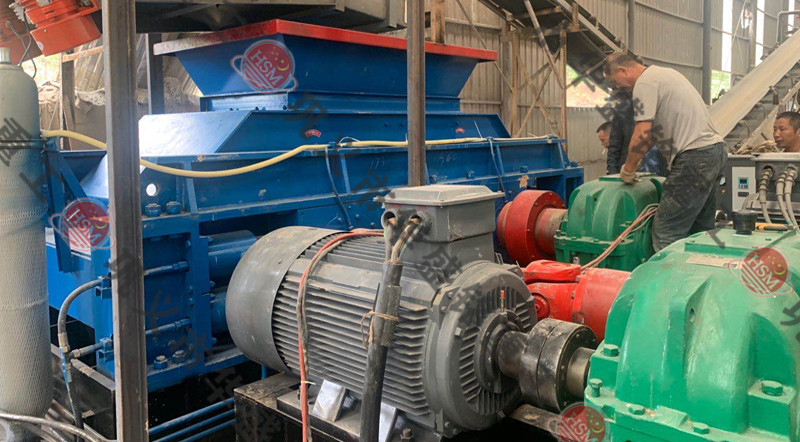 鉀長石制砂機通過輥輪進行破碎作業(yè)。物料由進料口進入輥子之間,通過擠壓作用破碎河卵石,兩輥輪之間有一定的間隙,兩輥輪間隙變大,物料出料粒度變大,在壓緊彈簧的作用下兩輥輪間隙變小,出料粒度變小。通過改變調整間隙,可以控制物料的出料粒度。