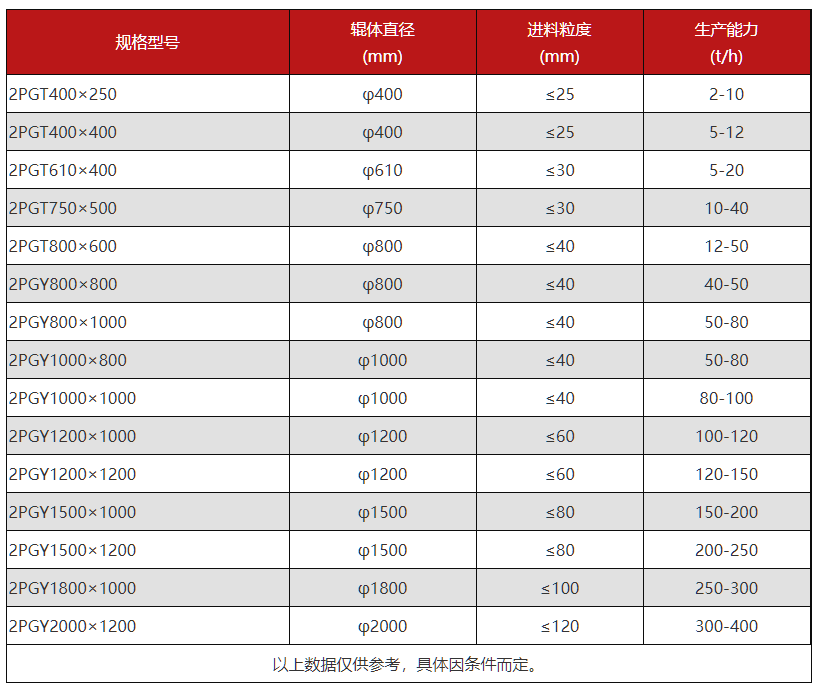石子對輥制砂一體機型號參數